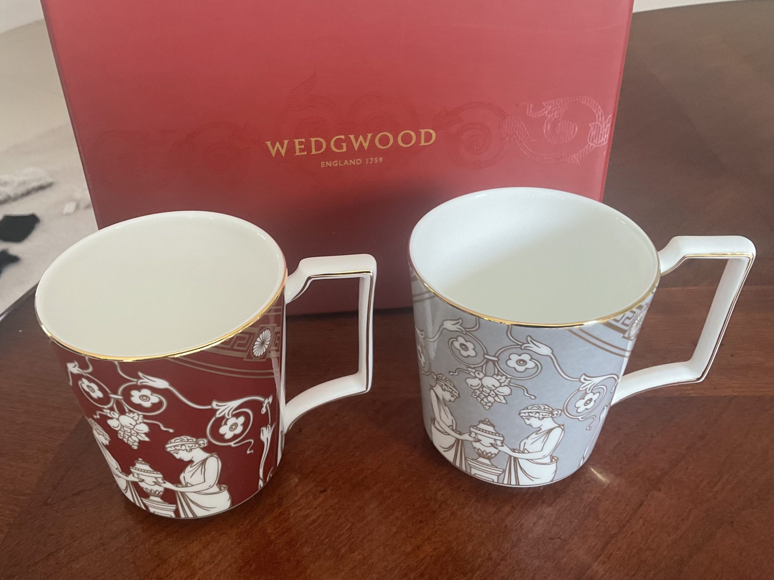 2 delightful bone china mugs ! NEW! Boxed a great gift for you or a friend!