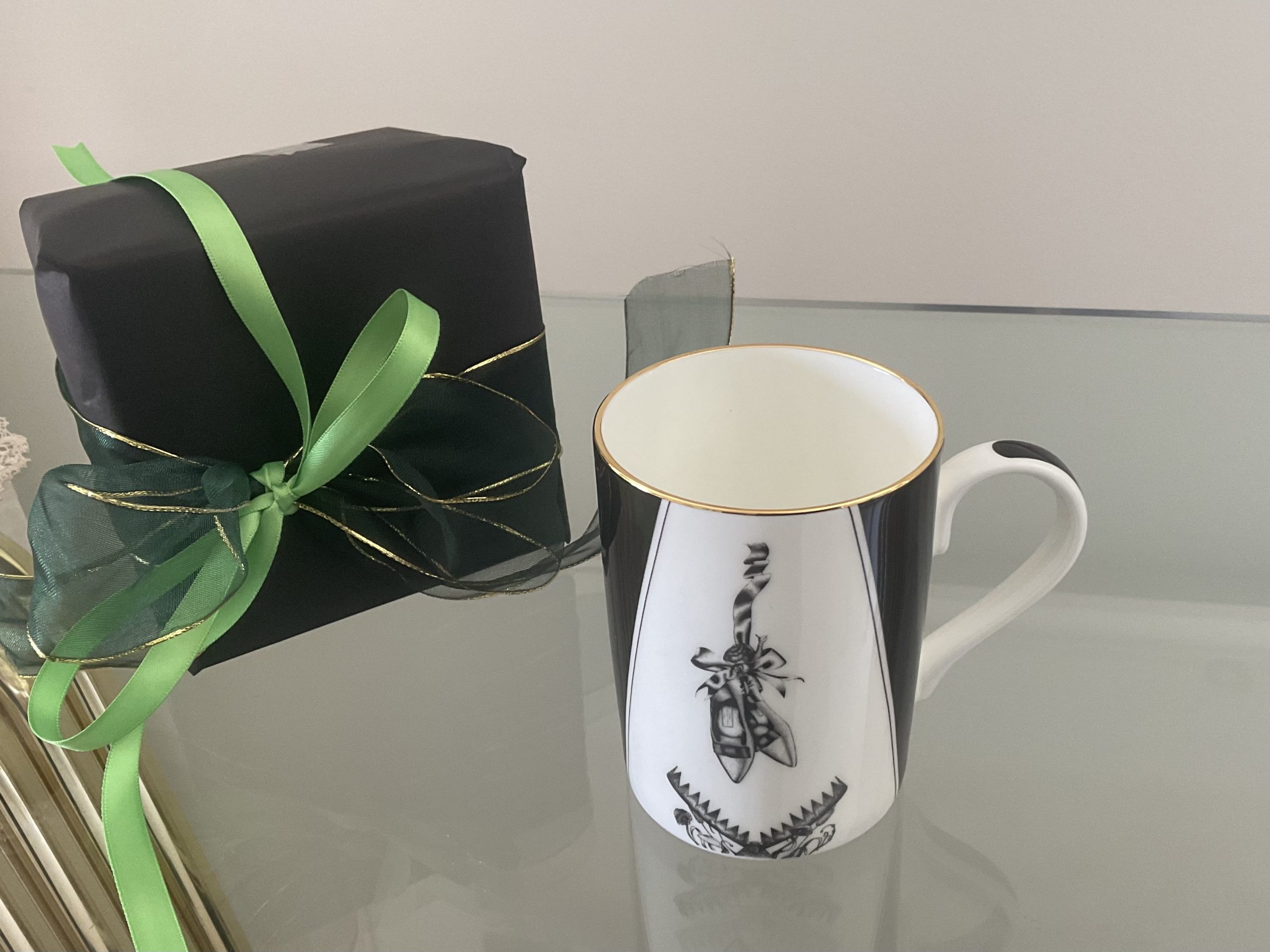 Black and White fine bone china from the UK. Laura Dickinson Clarke product trimmed with gold! Great to drink from! A beautiful gift!