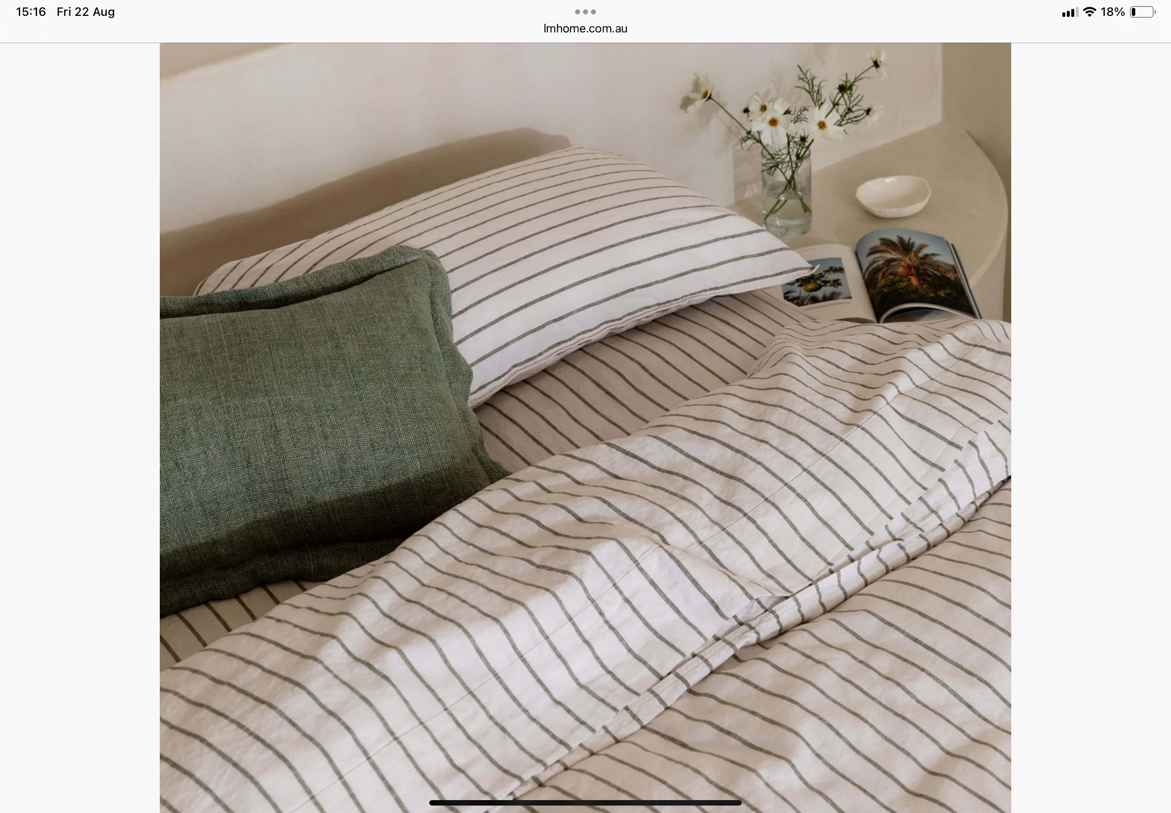 Loft features a spaced stripe woven in versatile Sage that runs across a soft off-white linen/ cotton blend. Each sheet set is crafted from 55% linen and 45% cotton and prewashed for added softness!