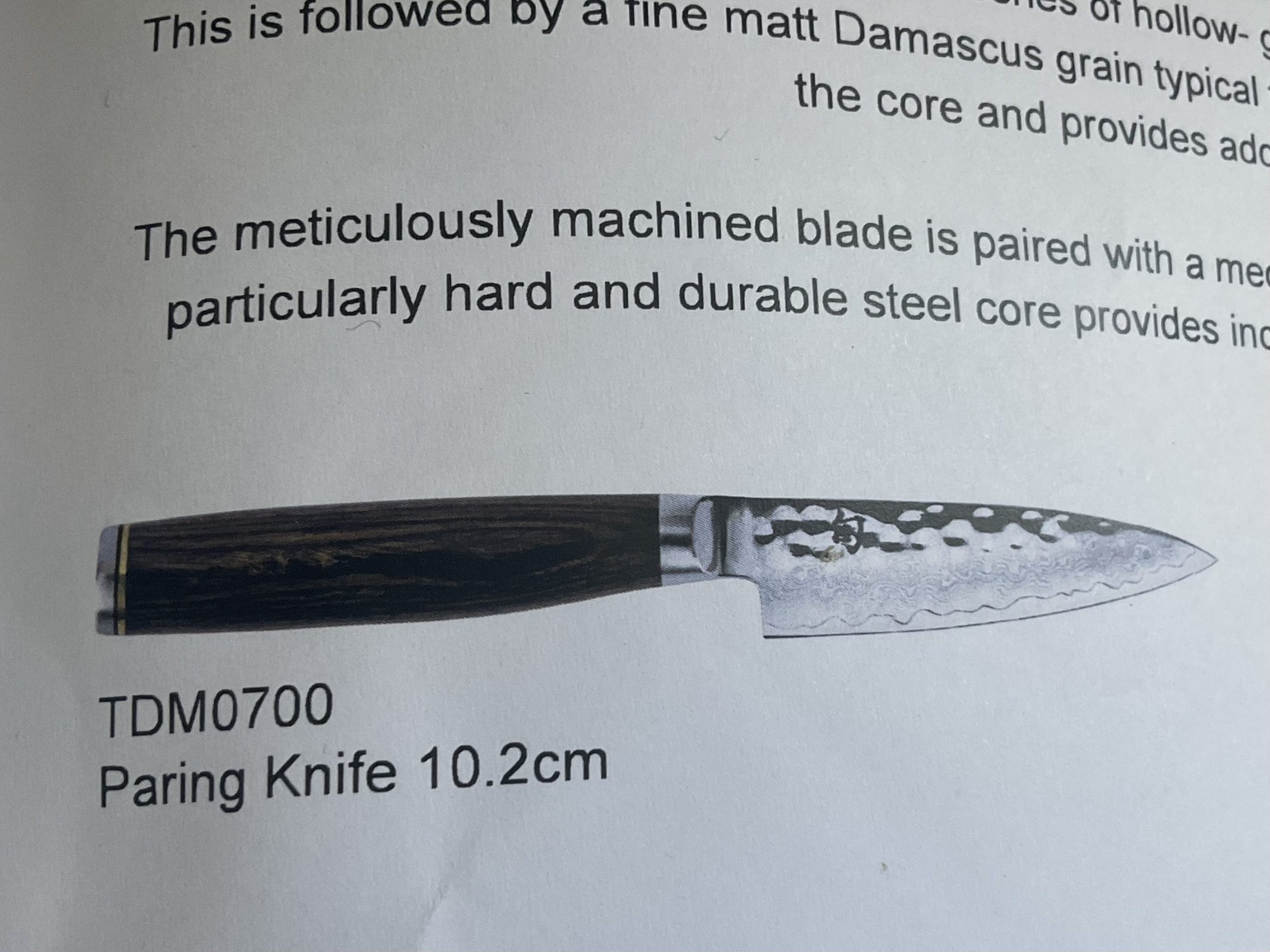 Shun made in Japan. These blades have been tailored to the needs of professional chefs. This paring knife is fantastic, so easy to use stays sharp, use everyday!